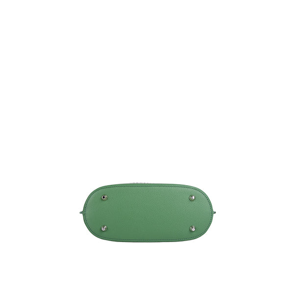 Die Ledertasche mit auffälligem Print besticht durch ihre minimalistische, kompakte Form und das markante Detail transparenter, runder Henkel an der Oberseite des Accessoires. Der Innenraum ist großzügig bemessen und mit einem feinen Baumwollstoff in einem auffälligen, bunten Muster ausgekleidet. Ein Metallreißverschluss am oberen Rand sorgt für die Sicherheit Ihrer Wertsachen. Die Tasche kann in der Hand oder dank des schmalen, verstellbaren und austauschbaren Lederriemens auch über der Schulter getragen werden.