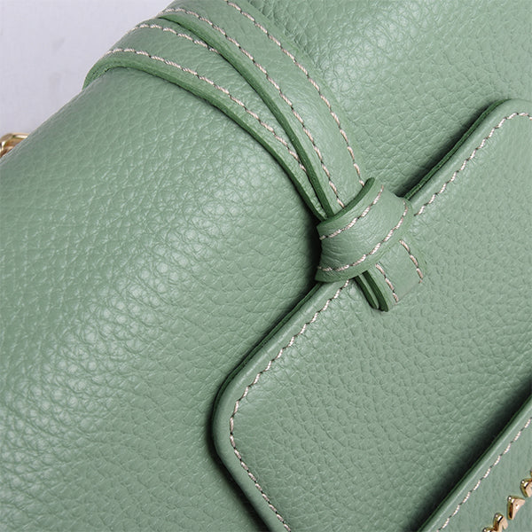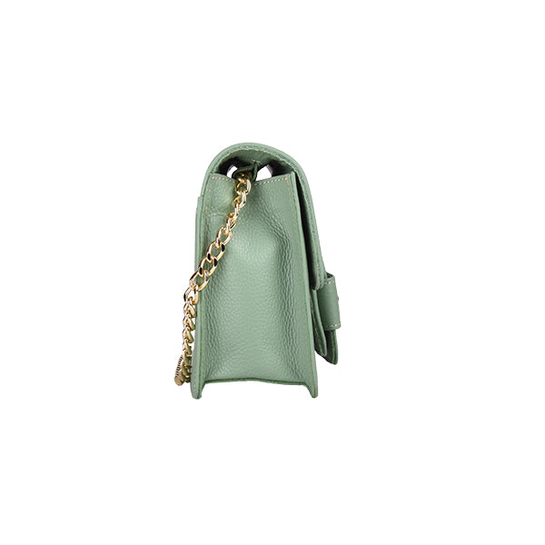 Die elegante Ledertasche besticht durch ihr interessantes Design, ungewöhnliche Details und hervorragende Funktionalität. Ihr Äußeres zeichnet sich durch eine regelmäßige Geometrie und ein interessantes Lederdetail aus. Der geräumige Innenraum ist mit edlem Glanzmaterial ausgekleidet und verfügt über eine zusätzliche versteckte Tasche für Ihre Wertsachen. Die Tasche wird mit einem Magnetknopf geschlossen, und dank der glänzenden, nickelfarbenen Metallkette können Sie sie bequem über der Schulter tragen.